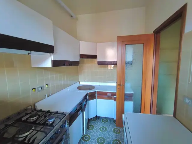 L’abitazione offre ambienti ampi e luminosi: un grande salone rappresenta il cuore della zona giorno, perfetto per ricevere o creare un confortevole spazio living. La cucina è separata e si affianca a un pratico tinello, ideale come sala da pranzo quotidiana. La zona notte comprende due camere da letto di generose dimensioni e due bagni, oltre a un corridoio che distribuisce gli ambienti con razionalità.