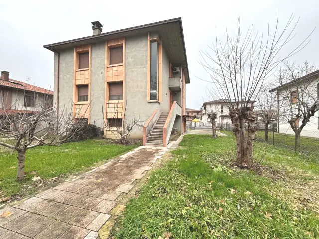 A Cortemaggiore, in zona semicentrale, proponiamo villa bifamiliare in vendita. La soluzione è divisa verticalmente in due appartamenti, ciascuno con il proprio ingresso privato pedonale e carraio.