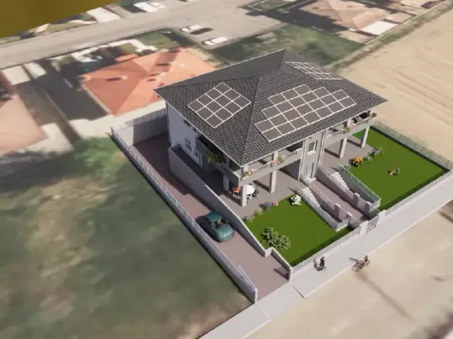 Riscaldamento a pavimento con pompa di calore e impianto fotovoltaico. Predisposizione per climatizzazione ed impianto di allarme.